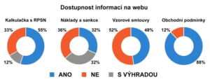 Třetina společností nemá na webu kalkulačku splátek, zákazník se informace dozví jen na zavolání či po vložení osobních údajů. Některé společnosti neuvádějí v kalkulačce RPSN sazbu. Více než třetina společností, včetně řady renomovaných bank, neuvádí na webu konkrétně náklady, které bude vymáhat v případě prodlení splátek půjčky (náklady za upomínky či vymáhání). Vzor smlouvy o úvěru má na svém webu jen necelá polovina společností.